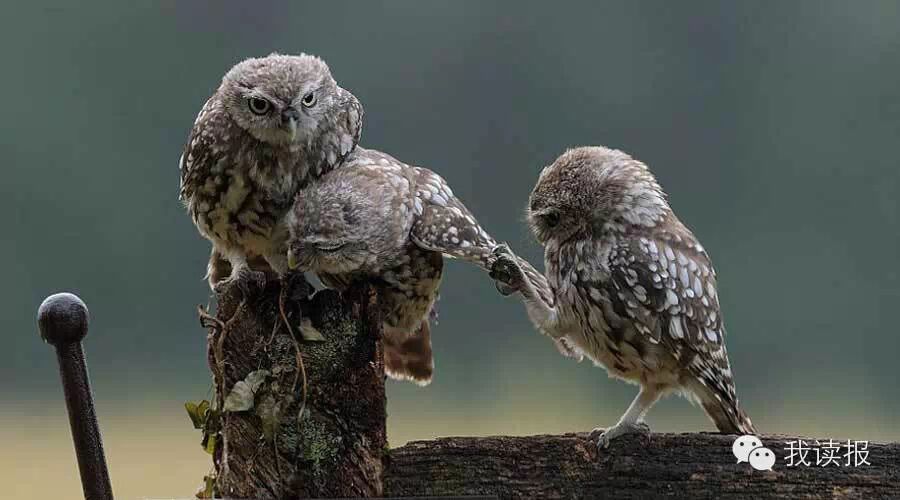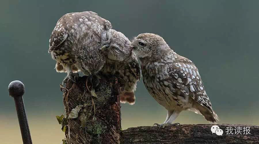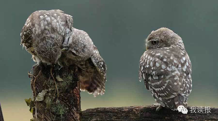 真暖心啊,来自英国伯恩茅斯市(Bournemouth)的业余摄影师迪恩·梅森近日在英格兰白金汉郡比肯斯菲尔德镇(Beaconsfield)拍摄到了:一只小猫头鹰说:你们干嘛呢?