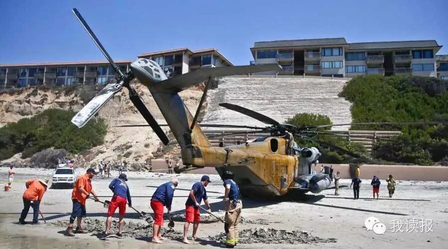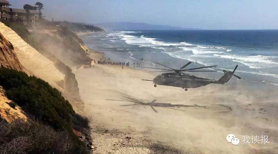 美国人最近很爱迫降啊,这次是在他们自己家,一架CH-53E超级种马运输机因为漏油在加州海滩迫降