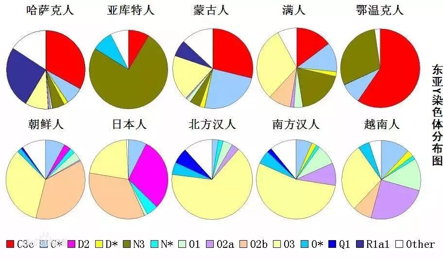 之后秦汉以降的中国历史非常复杂,但是O3系人口占多数的地位并无变化。而历史上的汉人与北方草原民族,也不能简单以Y染色体类型O系与C系来区分。北方民族中的O3都不少,汉人中也有不少C系的,可以说你中有我,我中有你,古人确切的Y染色体类型并不容易推知。