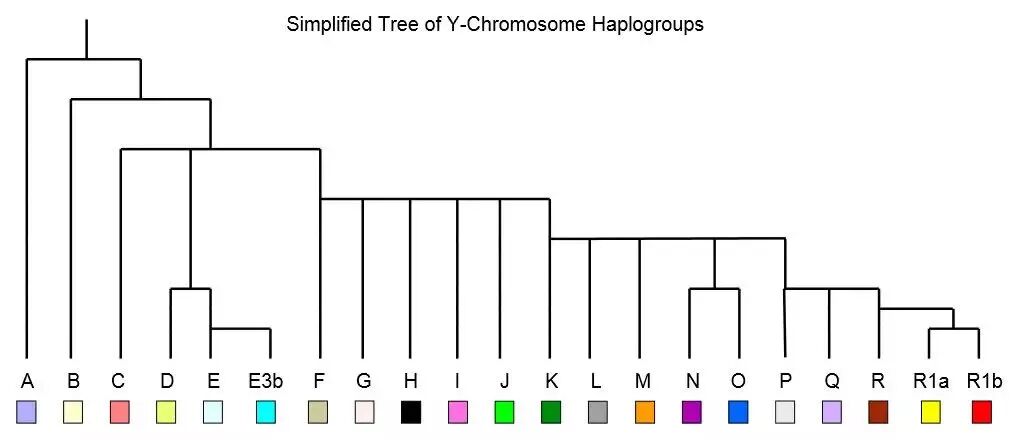 截至目前,世界上所有男人都可以归入A-R这18个大类的某一类里。不会有人同时在两个类别里,例如没有人又是A类、又是O类。因为一个新的男人,总是继承他父亲的类别,或者有一定机会突变出一个新的类别,但绝不可能变异成已有的另一个类别。Y染色体只有继承和突变,没有混血。