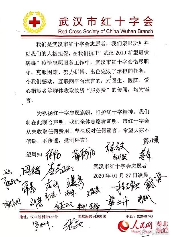 比如「武汉市红十字会」常务副会长陈耘表示: