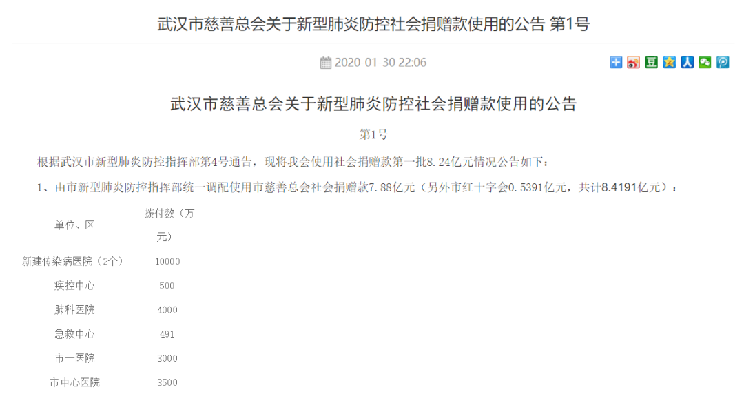 「武汉慈善总会」再怎么拖拉,至少有具体的拨付医院列表,让我们有知情权,知道自己的款项花去了哪里。