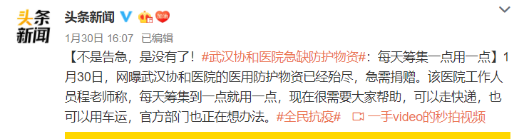 这段时间,全国人民都在共同捐赠物资,为什么还会有医疗告急?