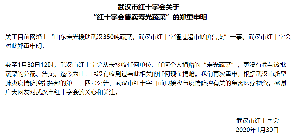 「武汉红十字会」还接连闹出了不少事,有「寿光蔬菜事件」,也有「捐赠服务费事件」,官微一直在辟谣: