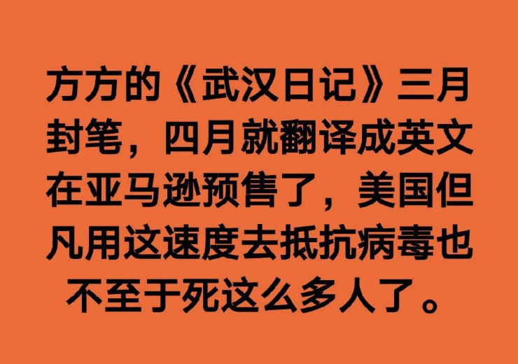 我永远也想不到,伤我最深的不是新冠病毒,而是那一本迅速出口到欧美的方方《武汉日记》,那个女人往我们的伤口上撒了一把盐。