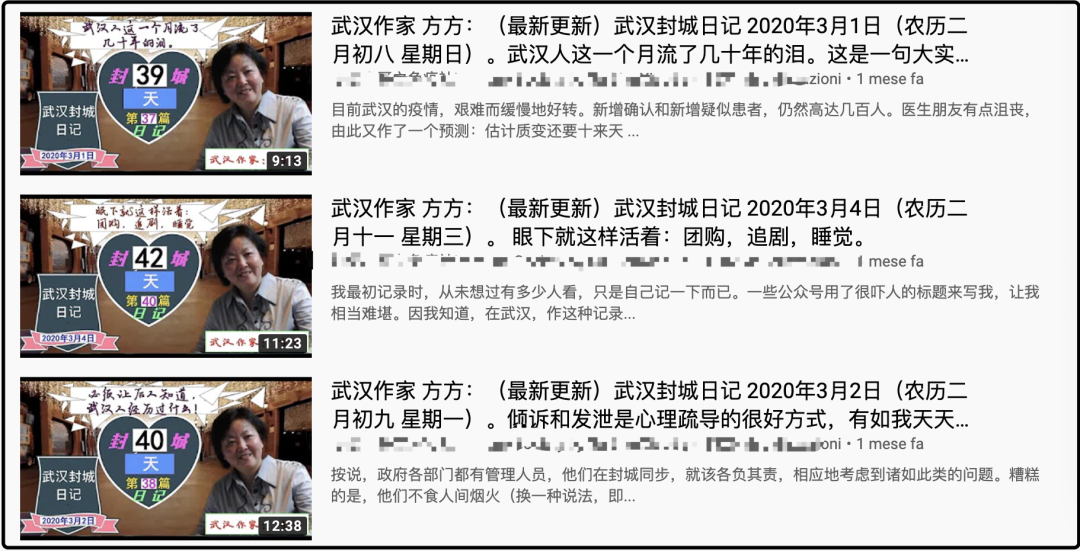 ▲在美国Youtube上,方方日记已被制作成合集,推向境外人群。