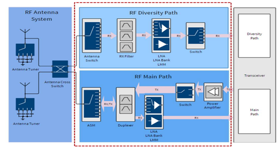 下图就清楚的说明了射频前端包括哪些器件: