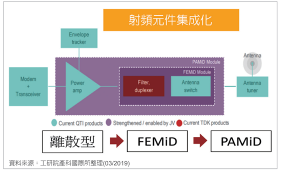FEMiD(Front End modulewith integrated duplexer),其整合了天线开关,滤波器和双工器,