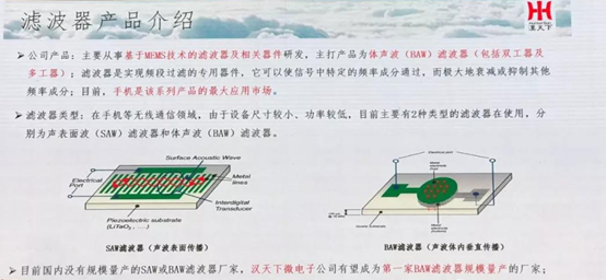 并说该公司有望成为国内第一家BAW滤波器规模量产的厂家。