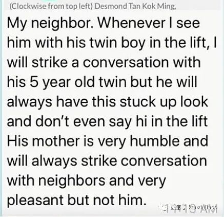 这个邻居说:“他是我邻居。每次在电梯里看到他和他的一对5岁双胞胎时,我总会试着与双胞胎聊天,但林绍权总是一副高高在上的样子,在电梯里连声‘hi’都不说。他的母亲倒是很谦逊,总爱跟邻居们打招呼,很和蔼。但林绍权并不如此。”