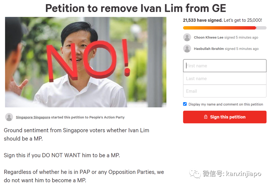 发起网络请愿书的网民写道:“无论他代表人民行动党或任何反对党,我们都不要他成为国会议员”。