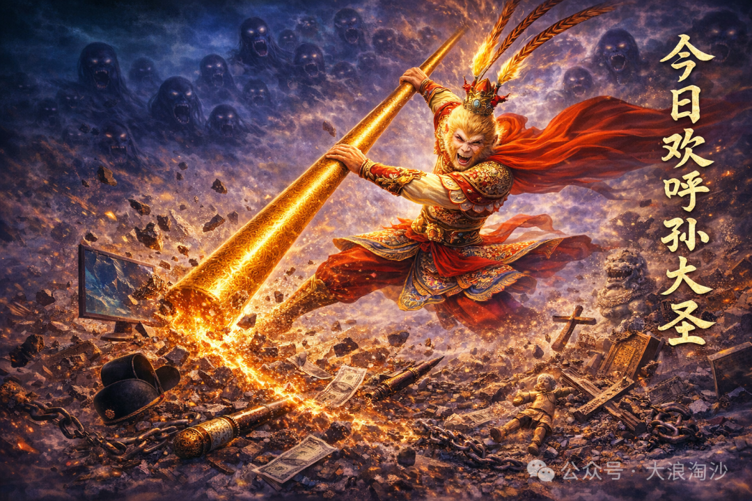 金猴奋起千钧棒,玉宇澄清万里埃。