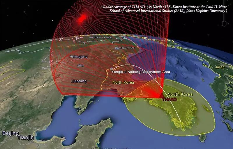 所以,萨德雷达如果部署在韩国的话,其位置极为特殊,能够观察中国再入飞行器的后侧,萨德雷达的探测距离能够比通常情况大很多,只要中国的导弹从地平线发射,萨德就能探测到。