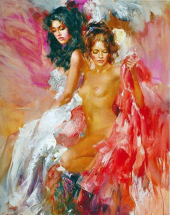 Ivan Slavinsky也是列宁格勒出生的,1968年,和Mstislav Pavlovy一前一后。他母亲是列宁格勒小有名气的画家和美术史专家。他算超现实主义和印象派画家。可能受到苏联时代社会主义现实主义的“约束",他这个超现实主义和Salvatore Dali可是太不一样,要现实得多了。风格热烈,富于戏剧性,特别爱用大片的红色。